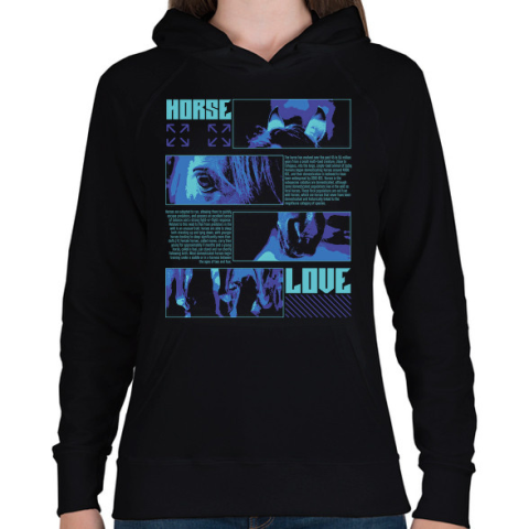 1 kép PRINTFASHION Horse Love - Női kapucnis pulóver - Fekete
