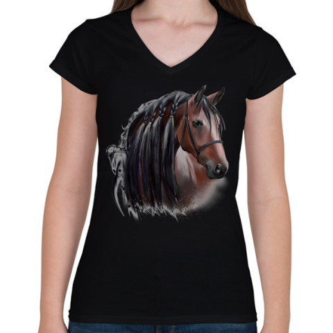1 kép PRINTFASHION horse - Női V-nyakú póló - Fekete