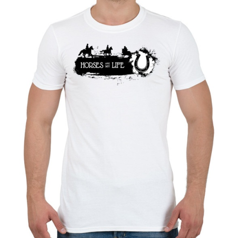 1 kép PRINTFASHION Horses are my life - Fekete-fehér - Férfi póló - Fehér