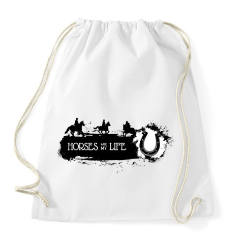 1 kép PRINTFASHION Horses are my life - Fekete-fehér - Sportzsák, Tornazsák - Fehér