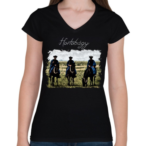 1 kép PRINTFASHION hortobágy - Női V-nyakú póló - Fekete