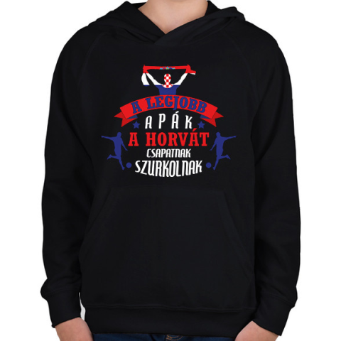 1 kép PRINTFASHION Horvát csapat - Gyerek kapucnis pulóver - Fekete