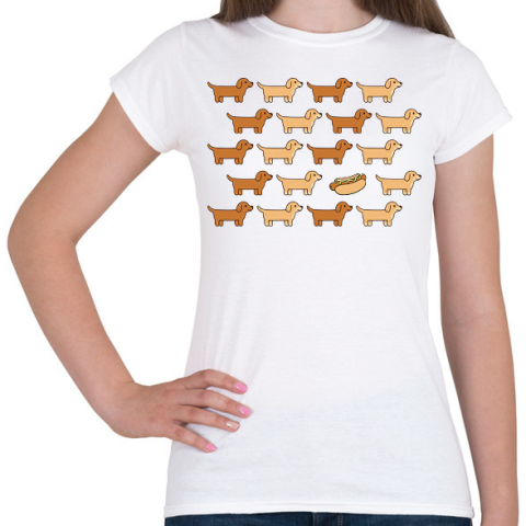 1 kép PRINTFASHION Hot dog - tacskók - Női póló - Fehér