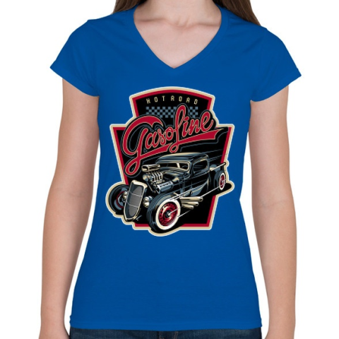 1 kép PRINTFASHION HOT ROAD - Női V-nyakú póló - Királykék