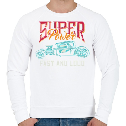 1 kép PRINTFASHION Hot rod 01 - Super Power - Férfi pulóver - Fehér