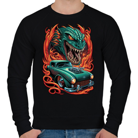 1 kép PRINTFASHION Hot Rod Retro autó sárkánnyal - Férfi pulóver - Fekete