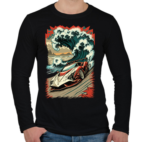 1 kép PRINTFASHION Hot Rod versenyautó hullámokkal - Férfi hosszú ujjú póló - Fekete