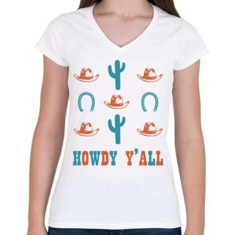 1 kép PRINTFASHION Howdy Y'all - Női V-nyakú póló - Fehér
