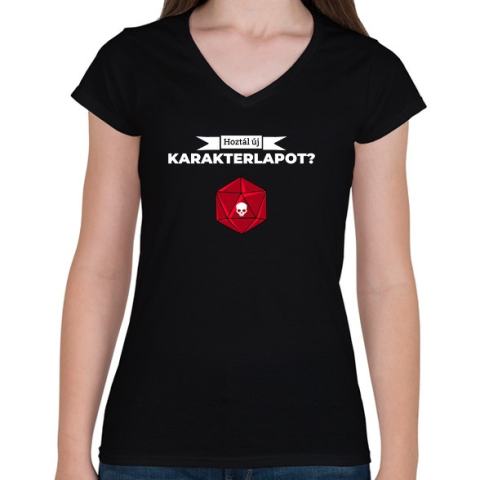1 kép PRINTFASHION Hoztál új karakterlapot? - Női V-nyakú póló - Fekete