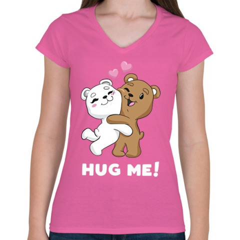 1 kép PRINTFASHION Hug me! - Női V-nyakú póló - Rózsaszín