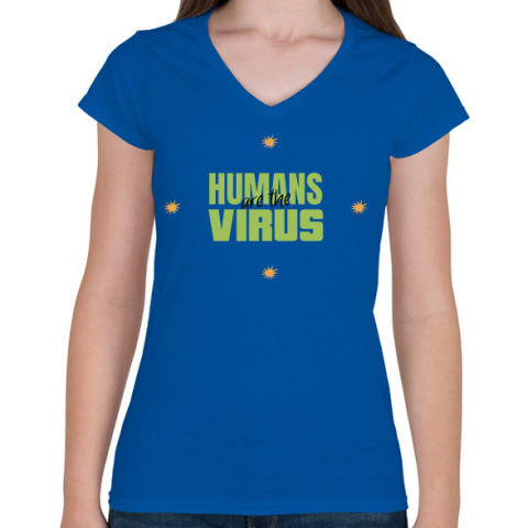 1 kép PRINTFASHION humanvirus - Női V-nyakú póló - Királykék