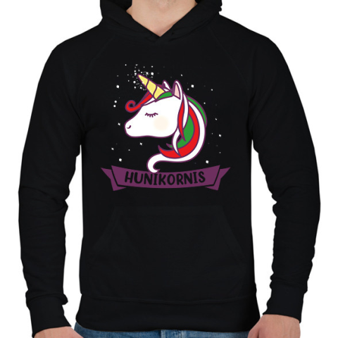 1 kép PRINTFASHION Hunikornis - Férfi kapucnis pulóver - Fekete