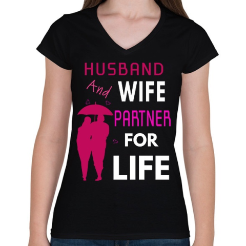 1 kép PRINTFASHION HUSBAND AND WIFE-LIFE - Női V-nyakú póló - Fekete