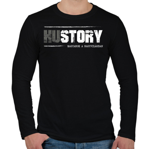 1 kép PRINTFASHION HUstory (white) - Férfi hosszú ujjú póló - Fekete