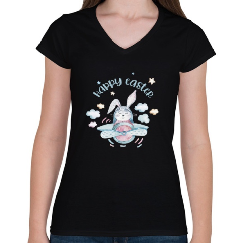 1 kép PRINTFASHION husvét16 - Női V-nyakú póló - Fekete