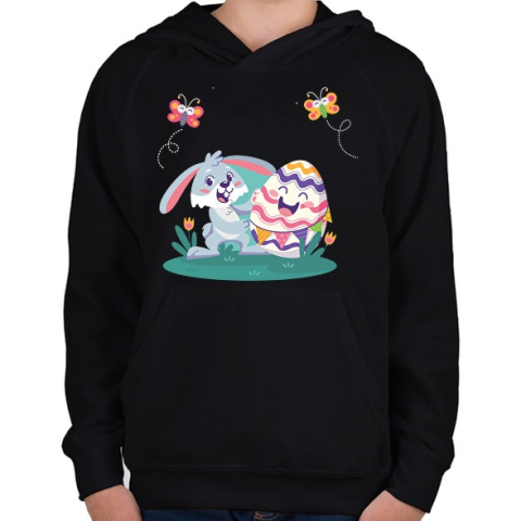 1 kép PRINTFASHION husvét26 - Gyerek kapucnis pulóver - Fekete