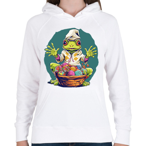 1 kép PRINTFASHION Húsvéti béka kosárnyi tojással - Női kapucnis pulóver - Fehér