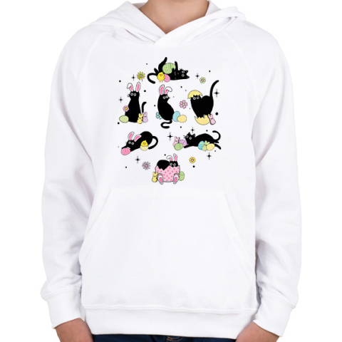 1 kép PRINTFASHION Húsvéti cicák - Gyerek kapucnis pulóver - Fehér