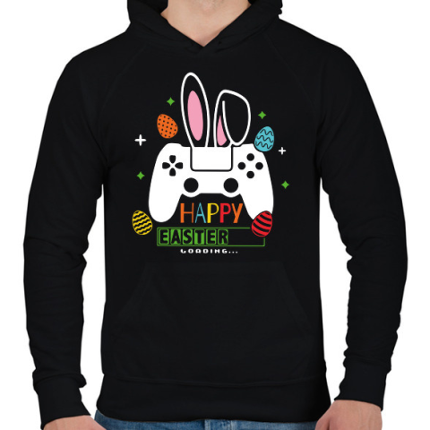 1 kép PRINTFASHION Húsvéti konzol - Férfi kapucnis pulóver - Fekete