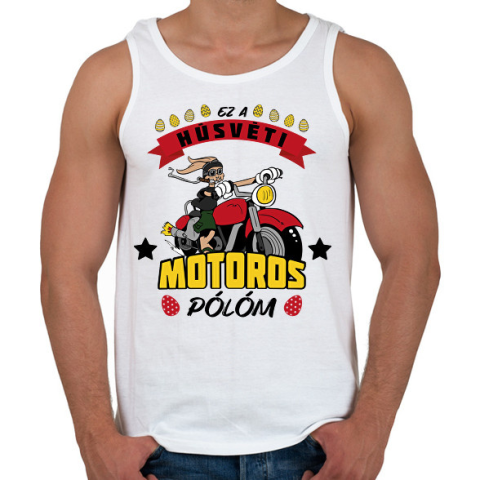 1 kép PRINTFASHION Húsvéti motoros póló - Férfi atléta - Fehér