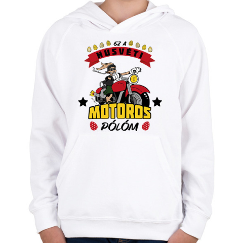 1 kép PRINTFASHION Húsvéti motoros póló - Gyerek kapucnis pulóver - Fehér