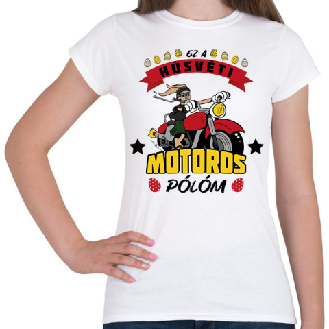 1 kép PRINTFASHION Húsvéti motoros póló - Női póló - Fehér