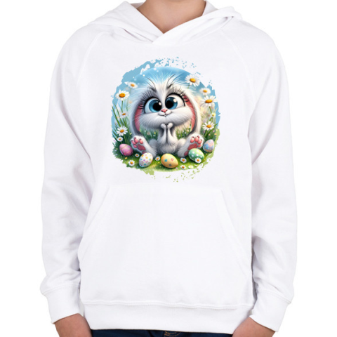 1 kép PRINTFASHION Húsvéti nyuszi - Gyerek kapucnis pulóver - Fehér