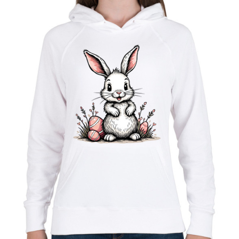 1 kép PRINTFASHION Húsvéti nyuszi - Női kapucnis pulóver - Fehér