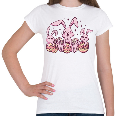 1 kép PRINTFASHION Húsvéti nyuszik - Női póló - Fehér
