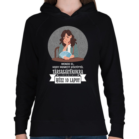 1 kép PRINTFASHION Húzz 10 lapot - Női kapucnis pulóver - Fekete