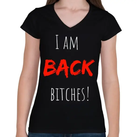 1 kép PRINTFASHION I am back b*tches - Női V-nyakú póló - Fekete