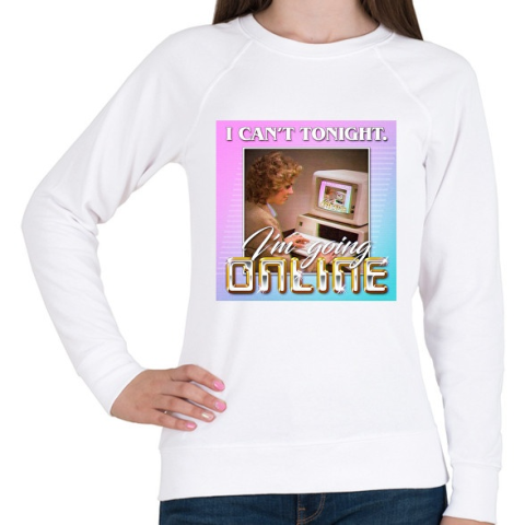 1 kép PRINTFASHION I Can't Tonight - I'm Going Online - Női pulóver - Fehér
