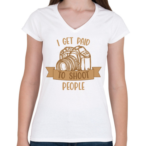 1 kép PRINTFASHION I get paid to shoot people - Női V-nyakú póló - Fehér
