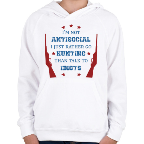 1 kép PRINTFASHION I just rather go hunting - Gyerek kapucnis pulóver - Fehér