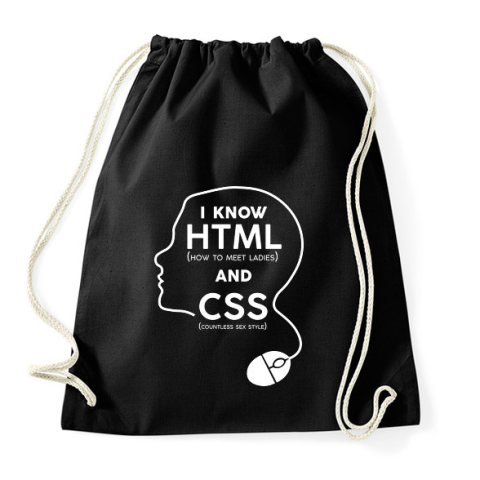 1 kép PRINTFASHION I know HTML and CSS - Sportzsák, Tornazsák - Fekete
