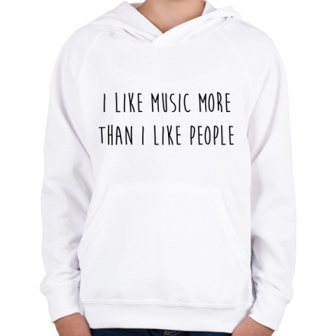 1 kép PRINTFASHION I like music... - Gyerek kapucnis pulóver - Fehér