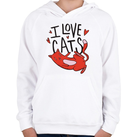 1 kép PRINTFASHION I love Cats - Gyerek kapucnis pulóver - Fehér