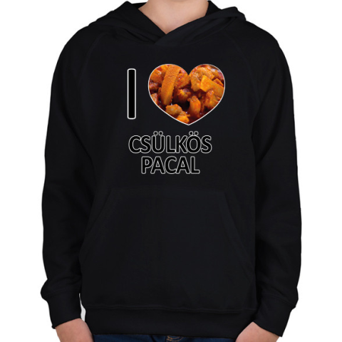 1 kép PRINTFASHION I love Csülkös pacal - Gyerek kapucnis pulóver - Fekete