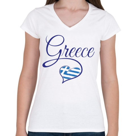 1 kép PRINTFASHION I love greece - Női V-nyakú póló - Fehér