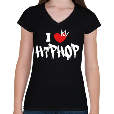 1 kép PRINTFASHION I love hiphop (white) - Női V-nyakú póló - Fekete