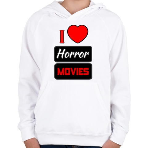 1 kép PRINTFASHION I love Horror Movies - Gyerek kapucnis pulóver - Fehér