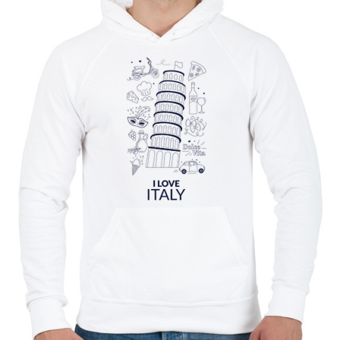 1 kép PRINTFASHION I LOVE ITALY 1 - Férfi kapucnis pulóver - Fehér