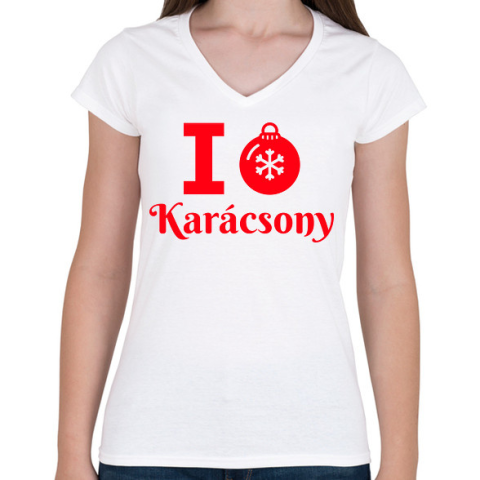 1 kép PRINTFASHION I love Karácsony - Női V-nyakú póló - Fehér