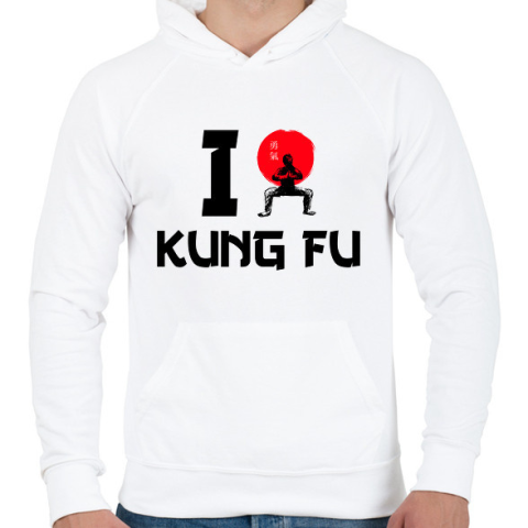 1 kép PRINTFASHION I love Kung Fu - Férfi kapucnis pulóver - Fehér
