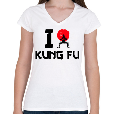 1 kép PRINTFASHION I love Kung Fu - Női V-nyakú póló - Fehér