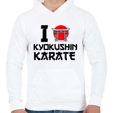 1 kép PRINTFASHION I love Kyokushin Karate - Férfi kapucnis pulóver - Fehér