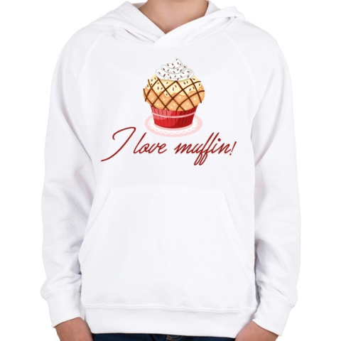 1 kép PRINTFASHION I love muffin - Gyerek kapucnis pulóver - Fehér