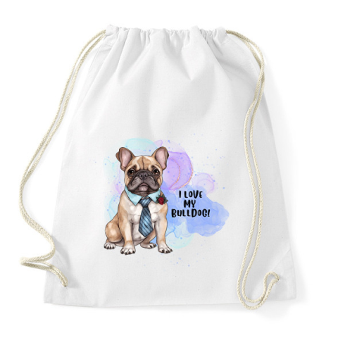 1 kép PRINTFASHION I love my bulldog - Sportzsák, Tornazsák - Fehér
