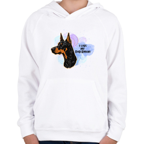 1 kép PRINTFASHION I love my german doberman - Gyerek kapucnis pulóver - Fehér