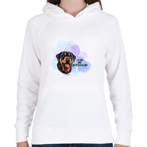 1 kép PRINTFASHION I love my rotweiler - Női kapucnis pulóver - Fehér